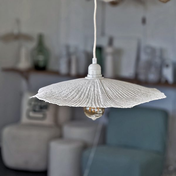 Abat-jour original en papier mâché réalisé à la main dont la forme est asymétrique et les bords irréguliers. Chaque abat-jour est unique : la forme et la dimension peut légèrement varier. Compatible avec douille E27. Usage intérieur exclusivement. Vendue sans ampoule, vue les irrégularités il faut parfois forcer pour y introduire la douille