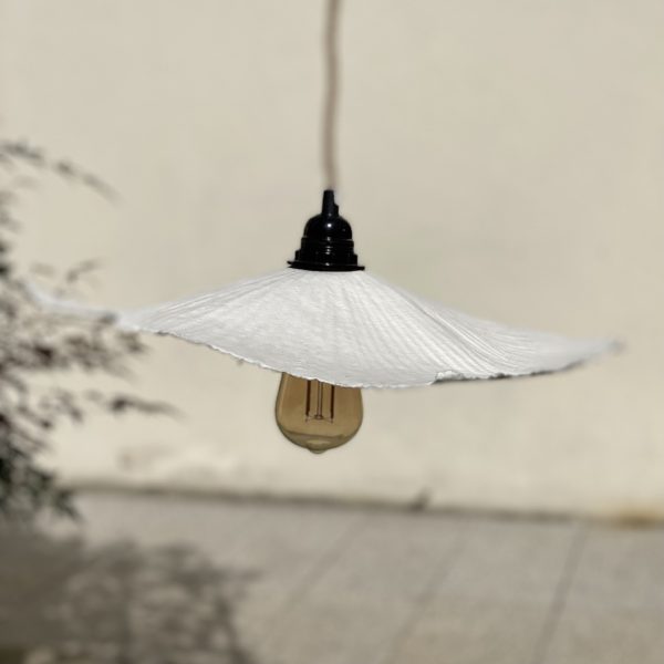 Abat-jour original en papier mâché réalisé à la main dont la forme est asymétrique et les bords irréguliers. Chaque abat-jour est unique : la forme et la dimension peut légèrement varier. Compatible avec douille E27. Usage intérieur exclusivement. Vendue sans ampoule, vue les irrégularités il faut parfois forcer pour y introduire la douille
