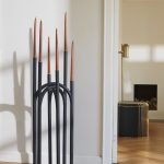 Avec son design décalé et sculpté, la table et le bougeoir de sol transportent sans effort des bougies tout en ajoutant de nouvelles dimensions majestueuses à n’importe quelle pièce. En raison de sa conception asymétrique, les bougies projetteront des ombres intrigantes à différents niveaux.